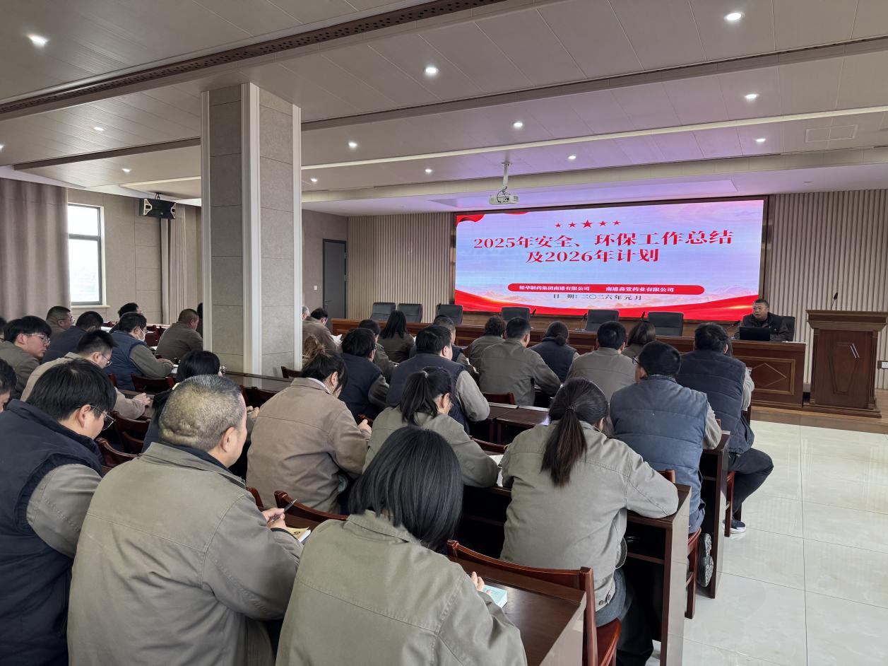 1月8日下午,精华制药、南通森萱召开2025年度安全环保工作总结暨2026年安全环保工作计划会议,公司经营层、各部门(车间)负责人、主管及安全员参会。